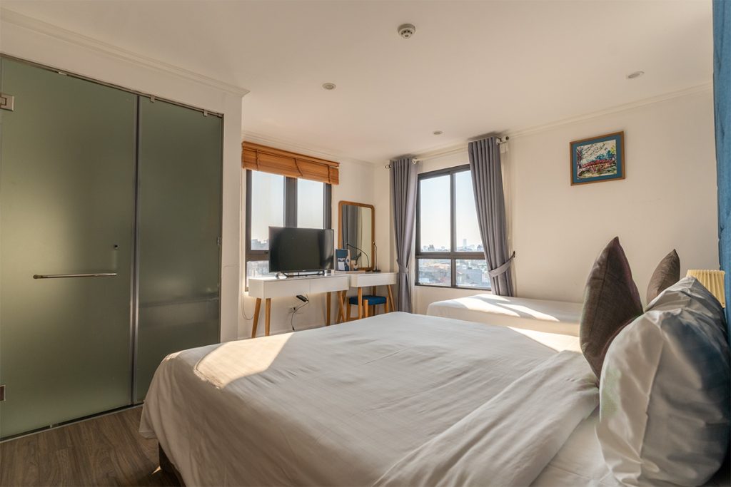 Beautiful bright room in the heart of Hanoi Old Quarter! Includes a fridge, A/C, full ensuite bathroom, 1 double bed. Vietnamese and Western buffet breakfast included.